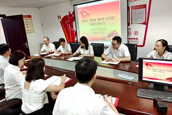 觀看慶祝大會后,中小擔(dān)保機關(guān)各黨支部、普惠金融事業(yè)部黨支部、南寧營業(yè)部黨支部80余名黨員干部在天筑鑫城27樓會議室參加“學(xué)黨史 感黨恩 提質(zhì)效 促發(fā)展”專題學(xué)習(xí)研討會。公司黨委書記、董事長邱宗躍講話,黨委委員、紀(jì)委書記陳克主持研討會。
